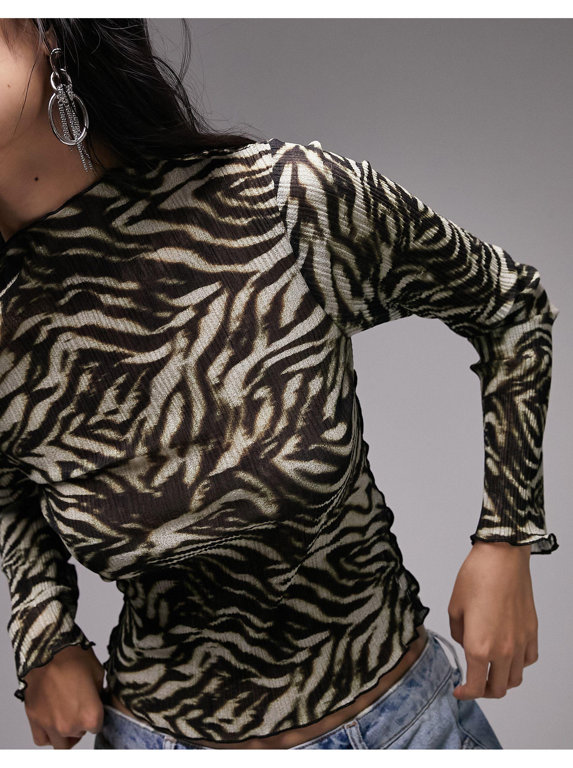 Topshop Plisse Zebra Print High Neck Top In Grey Lyst Uk